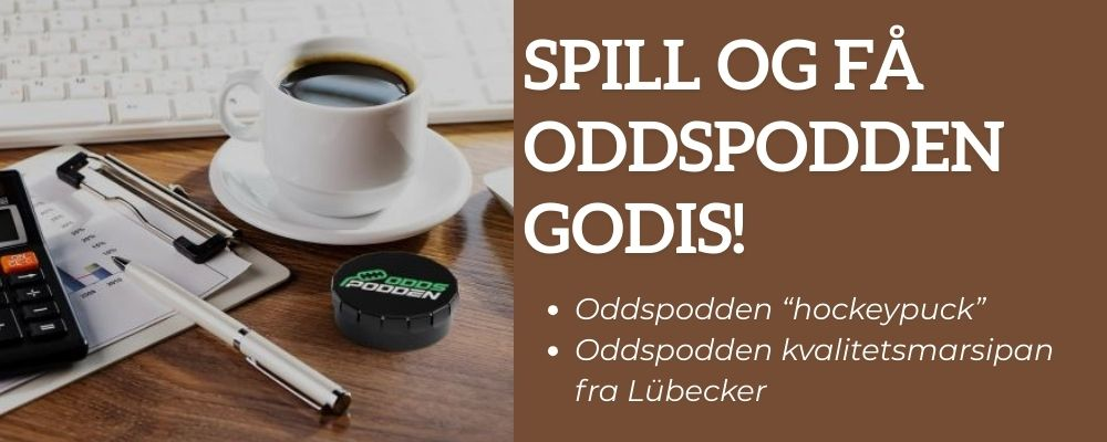 Alle som spiller for minst 100 kroner hos Rolletto i dag får en Oddspodden hockeypuck-boks med godteri OG vår kvalitetsmarsipan tilsendt gratis i posten!