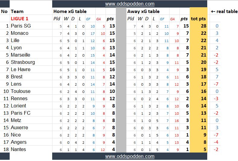 Disse tilbyr en alternativ måte å se på ligatabellene på der det er xG (hvis du ikke kjenner til xG:les om expected goals her) som avgjør kampene, ikke selve målene scoret.