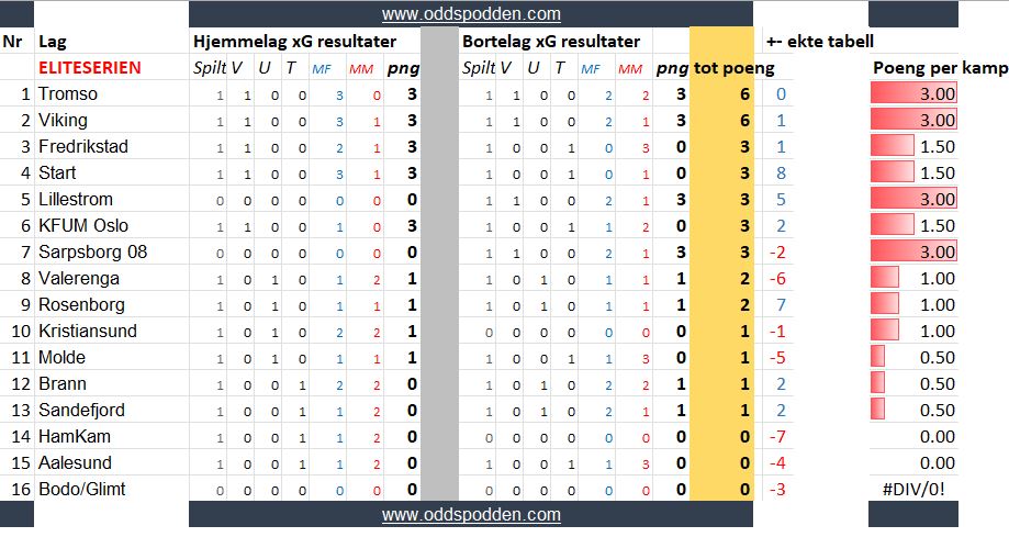 I tillegg regnes xG om til mål for å beregne målforskjellen til lagene.