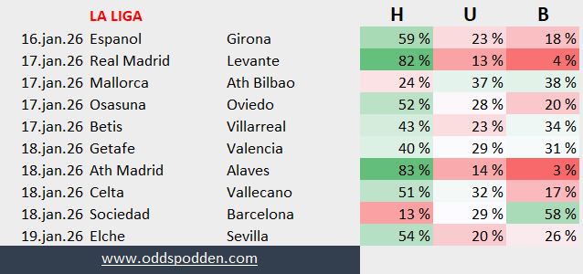 La Liga elsker Formtallene og Formtallene elsker La Liga, over 42% overskudd på tipsene i denne ligaen hittil. Sensasjonelt! Det ble to av to sist, vi går for nye fulltreffere!