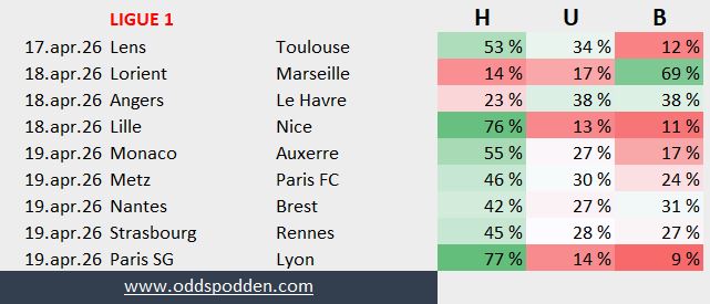 Uavgjort med et par klare kandidater, der Angers - Le Havre er priset til 2,95 hos Zoccer og er en "forventet" poengdeling, mens Lens - Toulouse er det spillet systemet vil ha - fordi oddsen er 4,35 hos Zoccer!