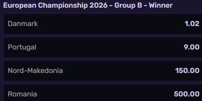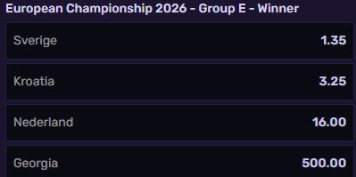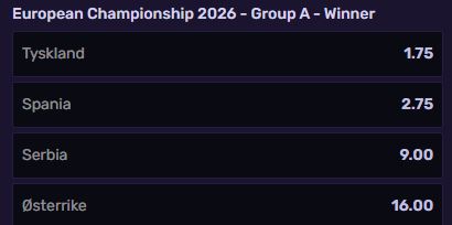 Spørsmålet her er altså: Fra hvilken innledende gruppe er EM-vinneren, og her er oddsen slik hos Sportuna: