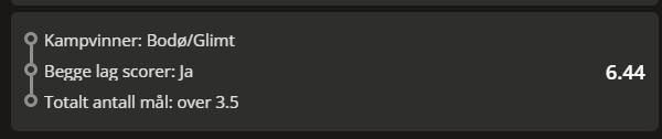 Oddsen i hjemmekampen er 2,67 - 3,50 - 2,50 hos Unionbet slik at du får et raskt bilde av hvor jevnt denne kampen i Bodø er priset opp, men vi har en mer presis oddssammenligning lenger ned i denne artikkelen.