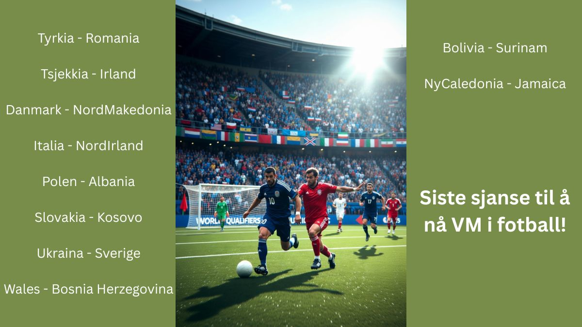 På kvelden den 31 mars, altså samme dagen som Norge spiller hjemme mot Sveits i privatlandskamp, er det klart hvilke 48 lag som spiller VM - og ikke minst hvem Norges siste motstander i gruppa er.