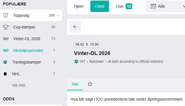 Totalt tilbyr Vinn nå et enormt antall OL-markeder – fra vinnerodds og medaljefordeling til spesialspill og nasjonale prestasjoner – alt samlet på ett sted.
