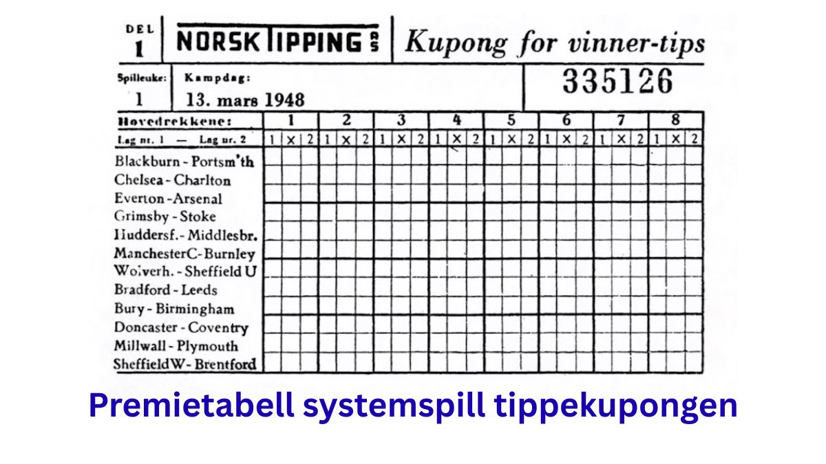 Premietabell Norsk Tipping systemspill tippekupongen