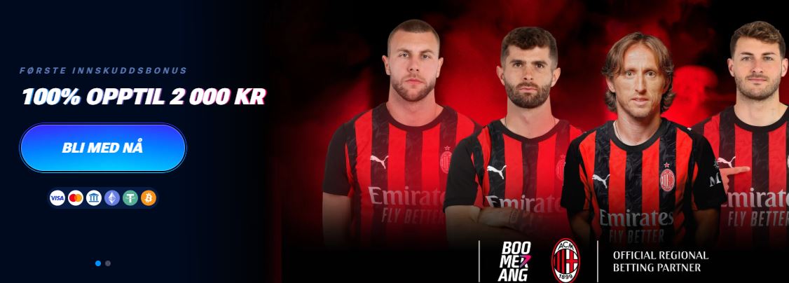 AC Milans offisielle spillpartner! Siden 2024 har Boomerang Bet vært offisiell "betting partner" med AC Milan, noe som vel borger for en viss seriøsitet. De har også den glamorøse fotballspilleren Alisha Lehmann, med rundt 16 millioner følgere på Instagram, som merkevareambassadør. |
