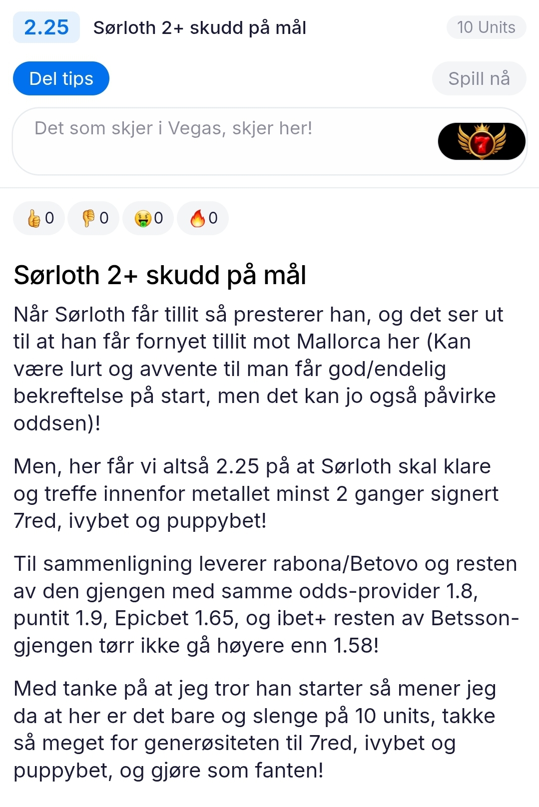 Sørloth 3+ skudd på mål