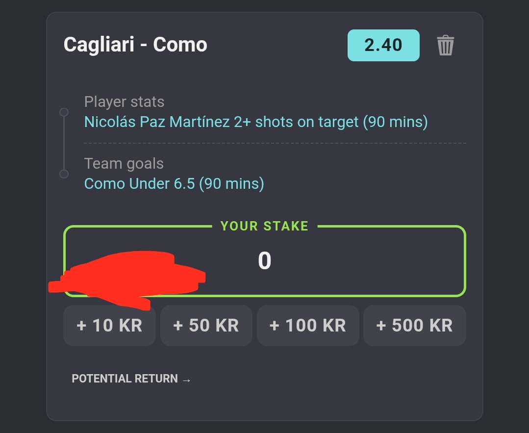 Paz 2+ skudd på mål + Como u6.5 (betbuilder)