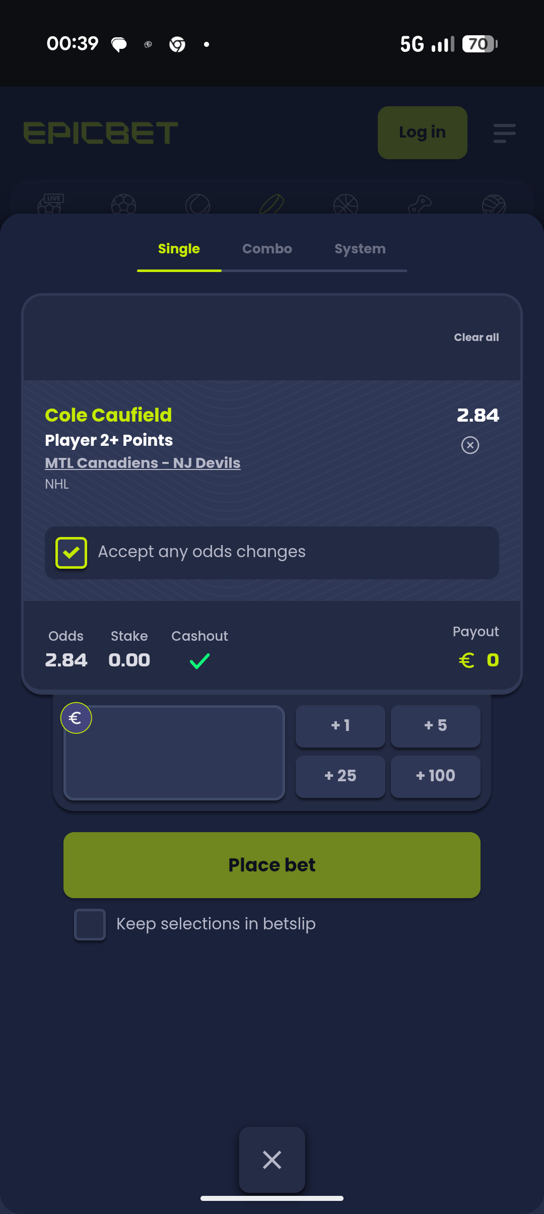 Cole Caufield over 1.5 poeng