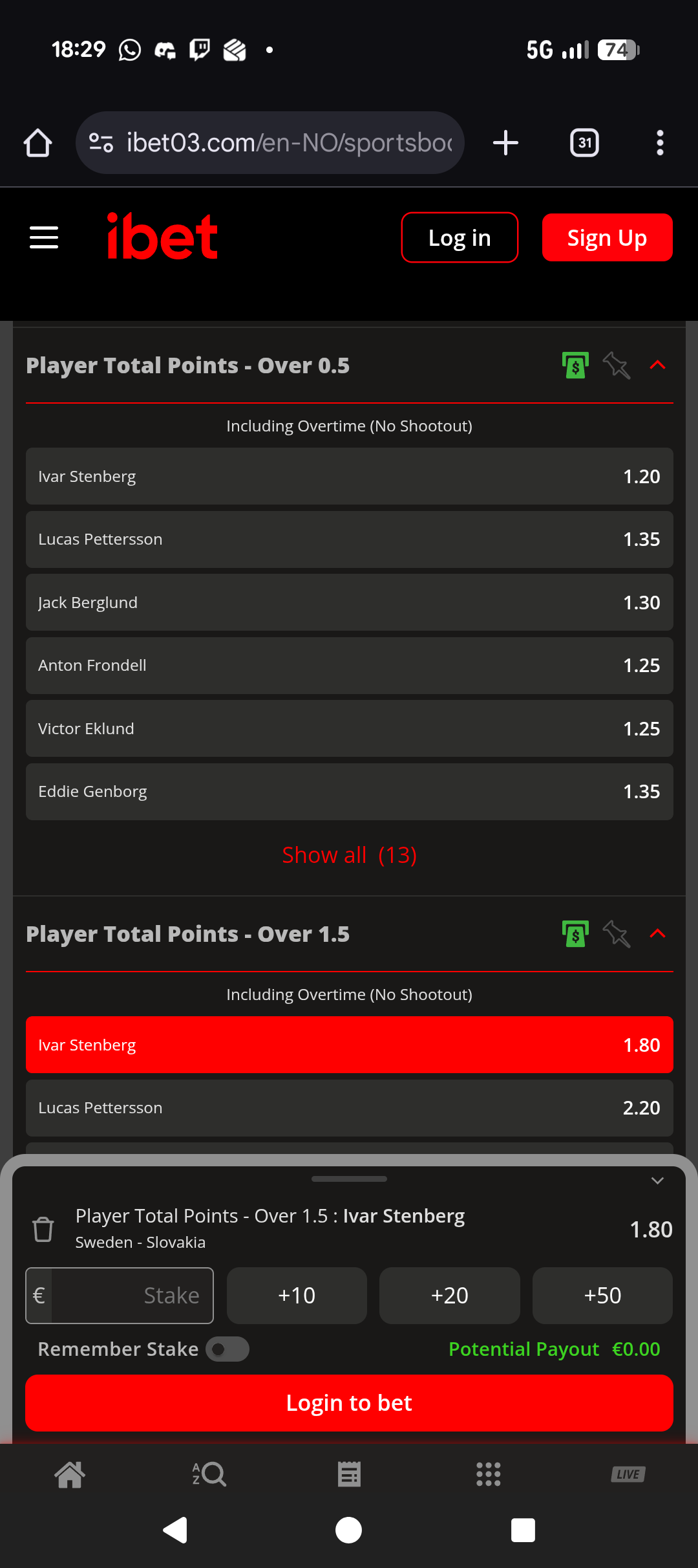 Ivar Stenberg over 1.5 poeng